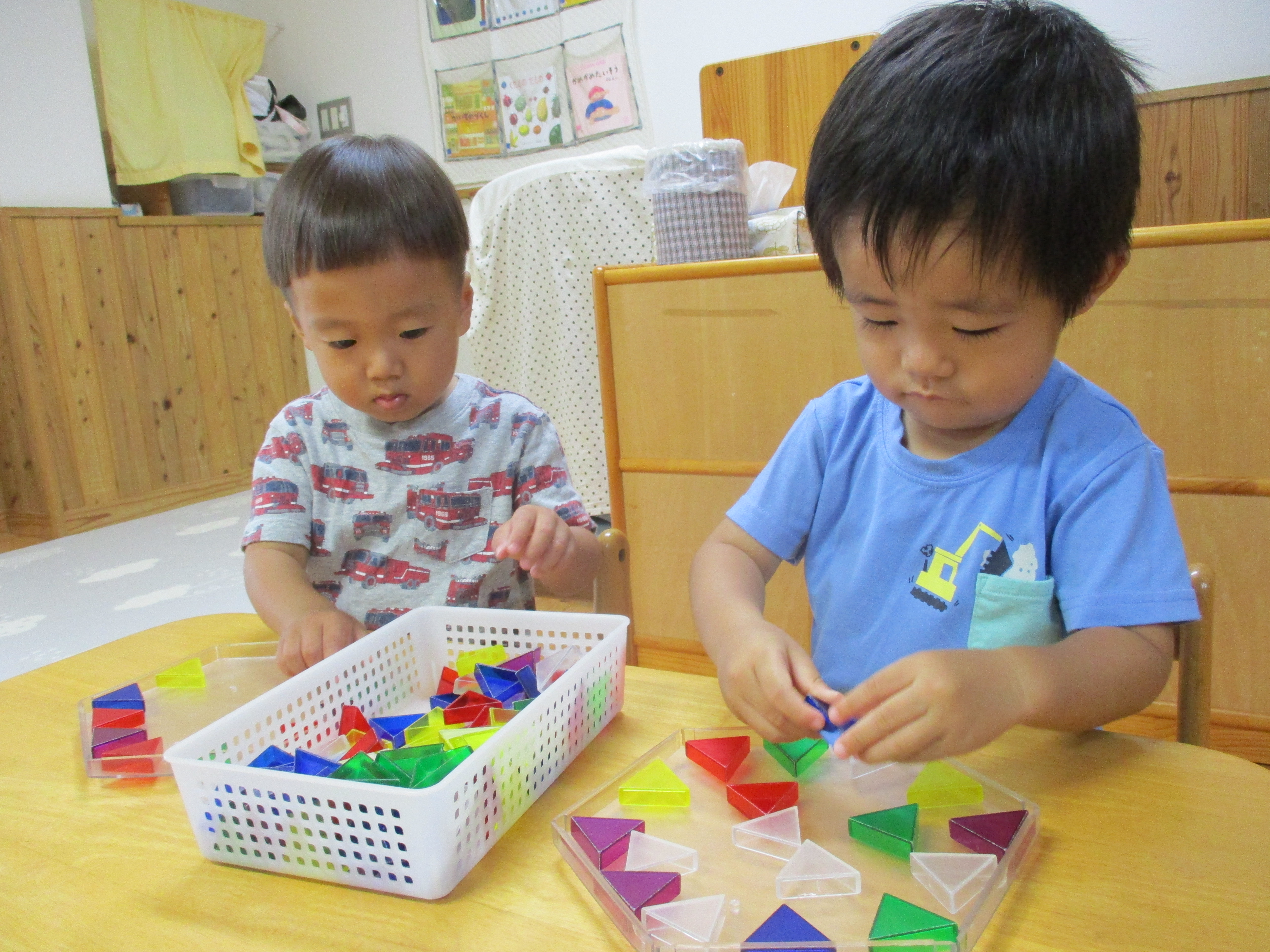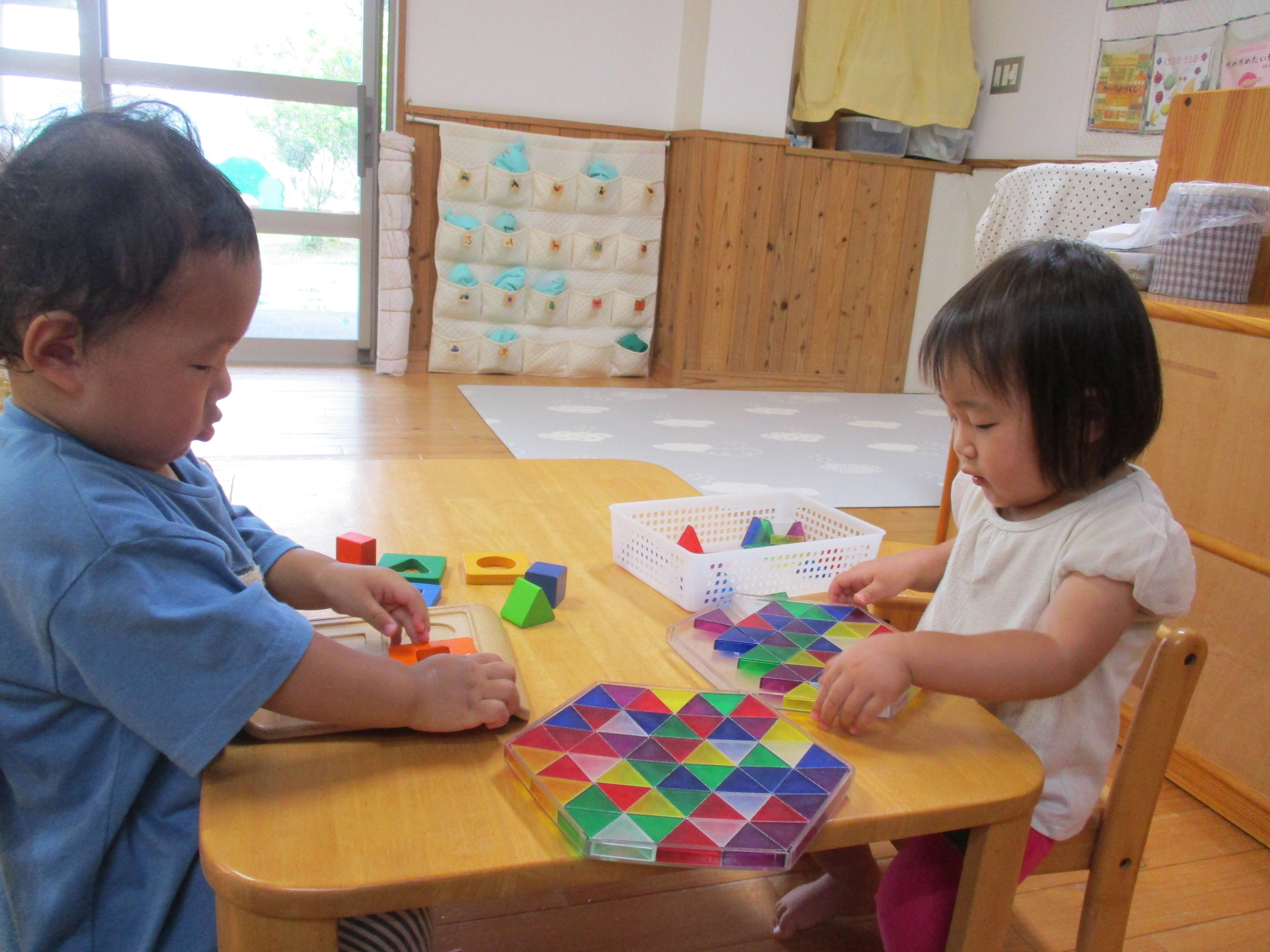 また、月齢の高い子はプリズモに挑戦し、上手に並べている姿があります。