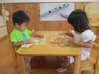 パーツがきれいにはまると「おー!」と嬉しそうに拍手したり次々とはめていこうとしたりして楽しんでいます。