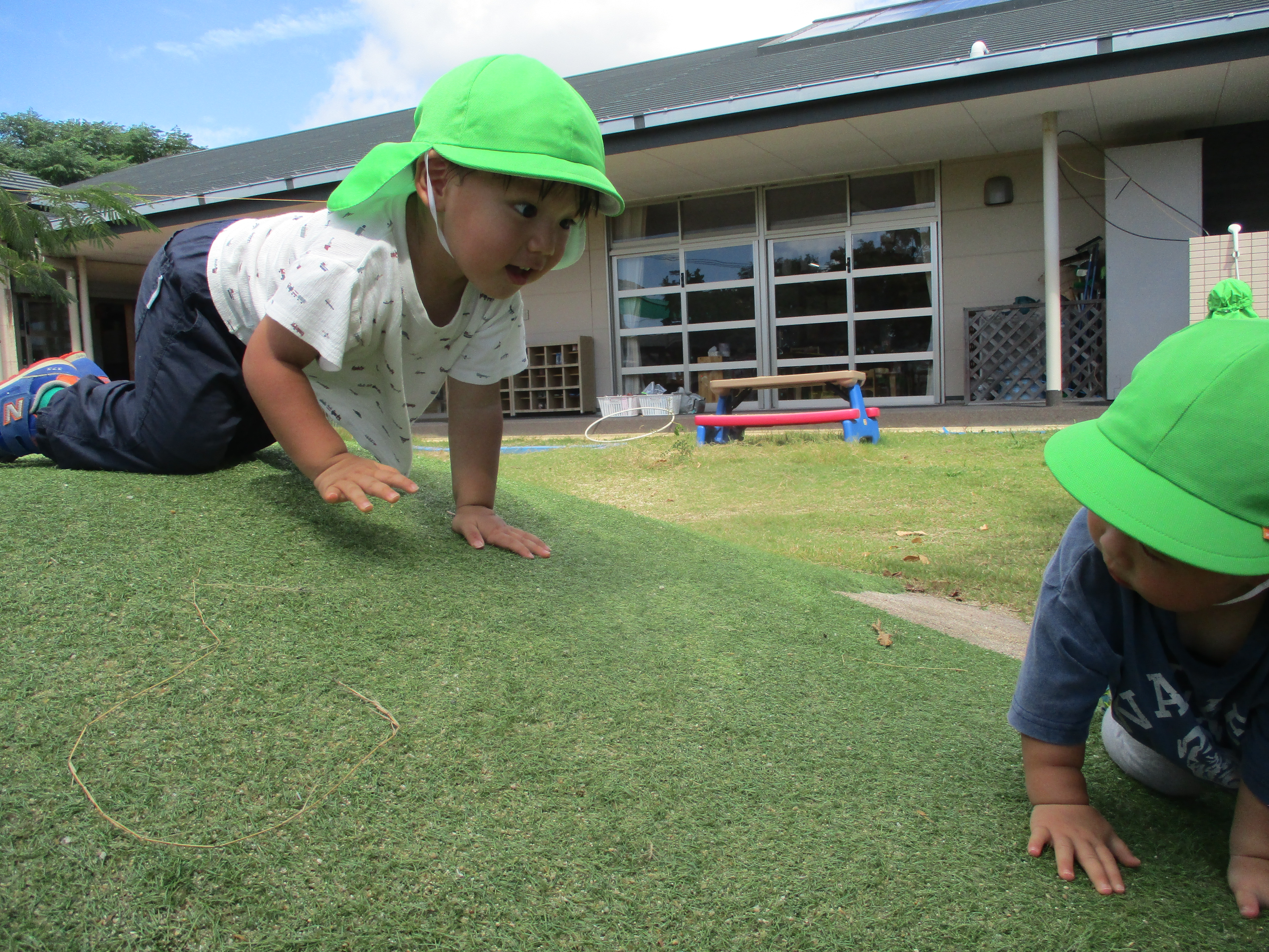 また、築山では登ってハイハイで下りている子を見て、真似て一緒に遊んでいる姿がありました。