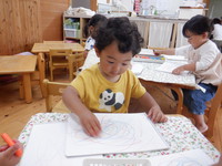 他にも雨の日は、クレヨンを使ってお絵描きを楽しんでいます。