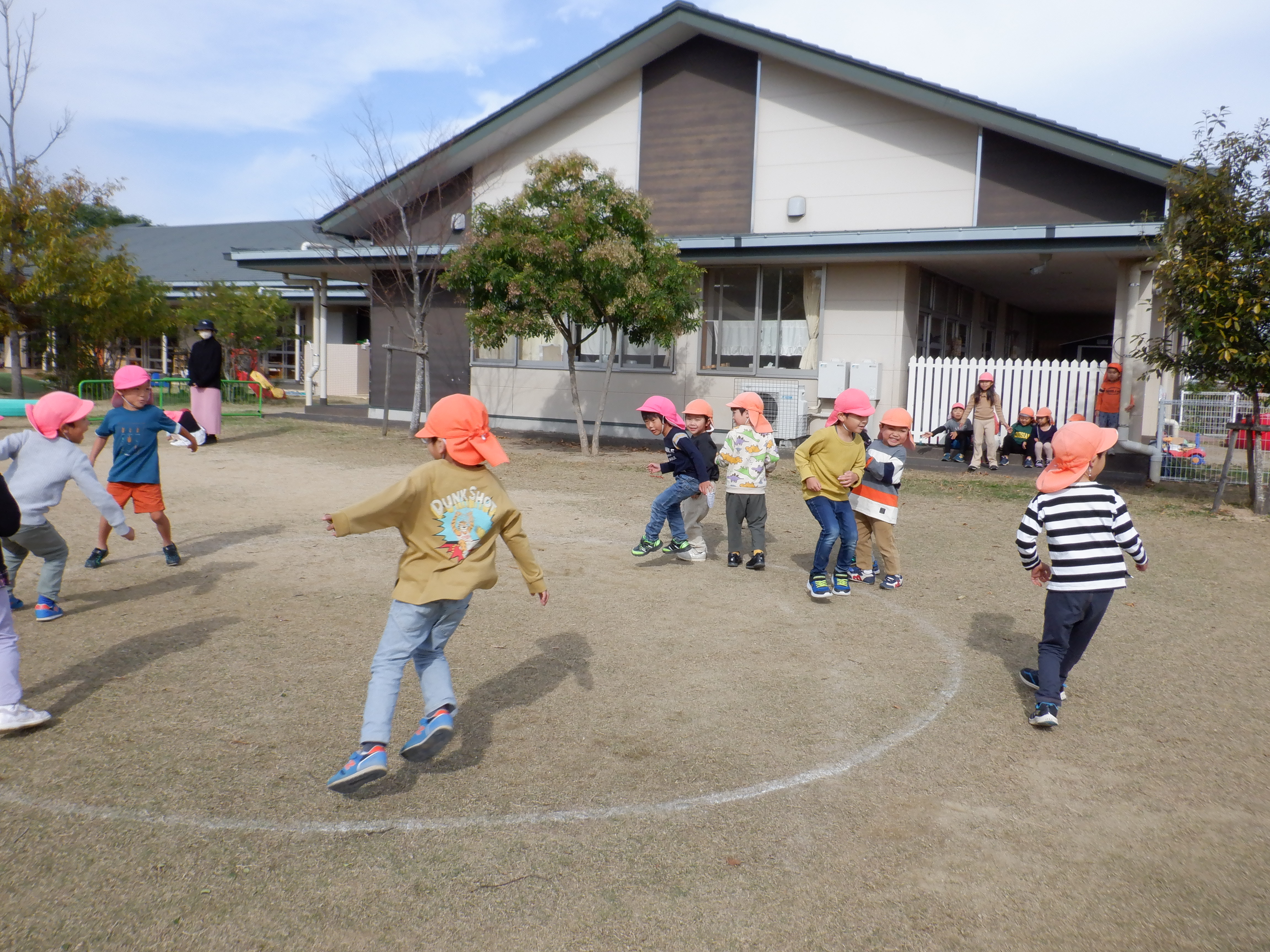 みんなそれぞれが「中はいる!」「ほな、外する」と話し合い役割を決めています。