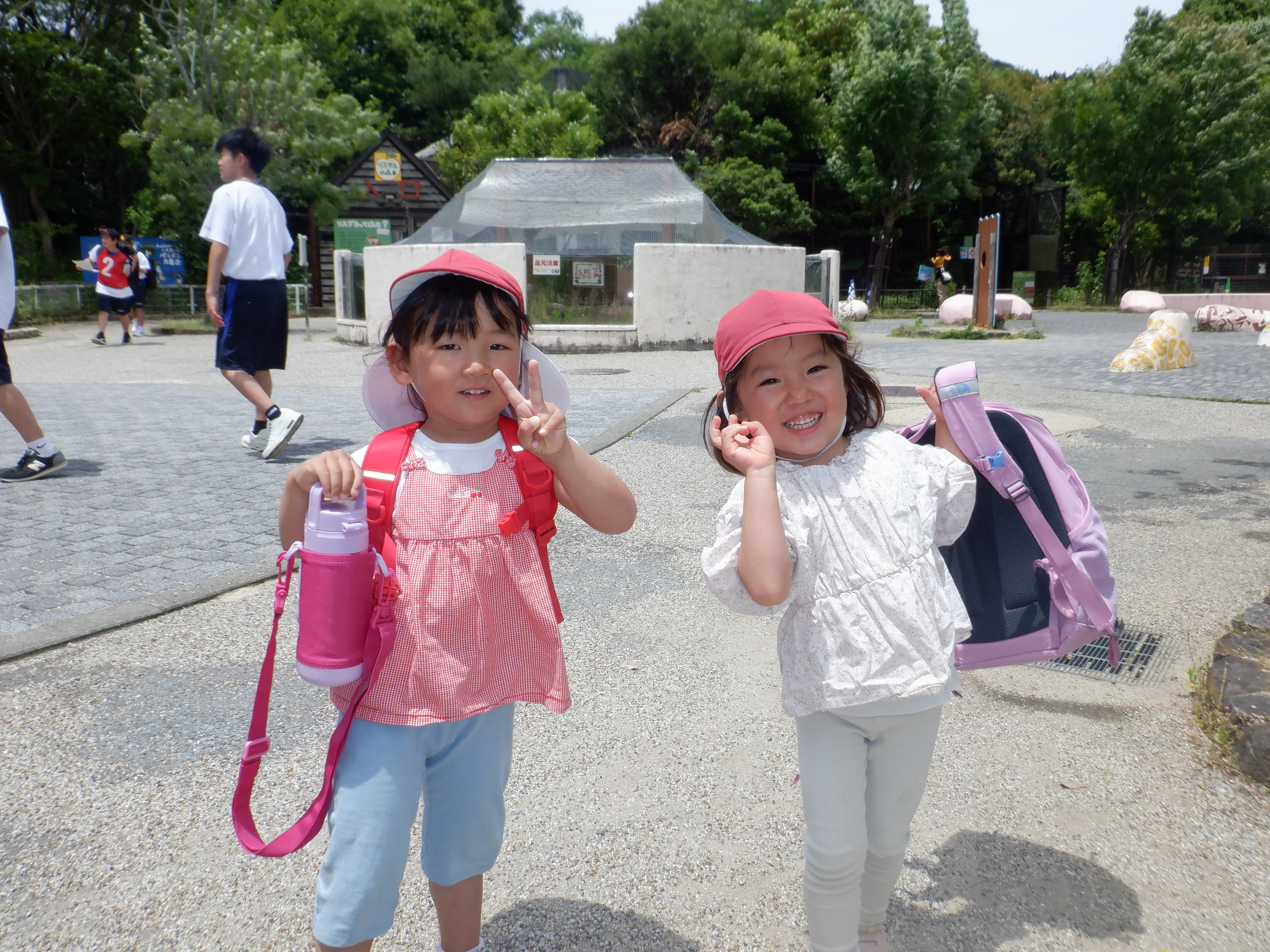 昨日は親子遠足お世話になりました。子どもたちは何日も前から「あと何回寝たら遠足かな?」「ライオンおるかな?」と話をしてワクワクしていました。バスの中では保護者の方とのお話を楽しんだりマイクに向かって今日一番楽しみなことを発表してもらいました。動物園では沢山の動物を見たりお弁当を食べたりシャボン玉を飛ばしたりと沢山遊んで楽しんでいました。