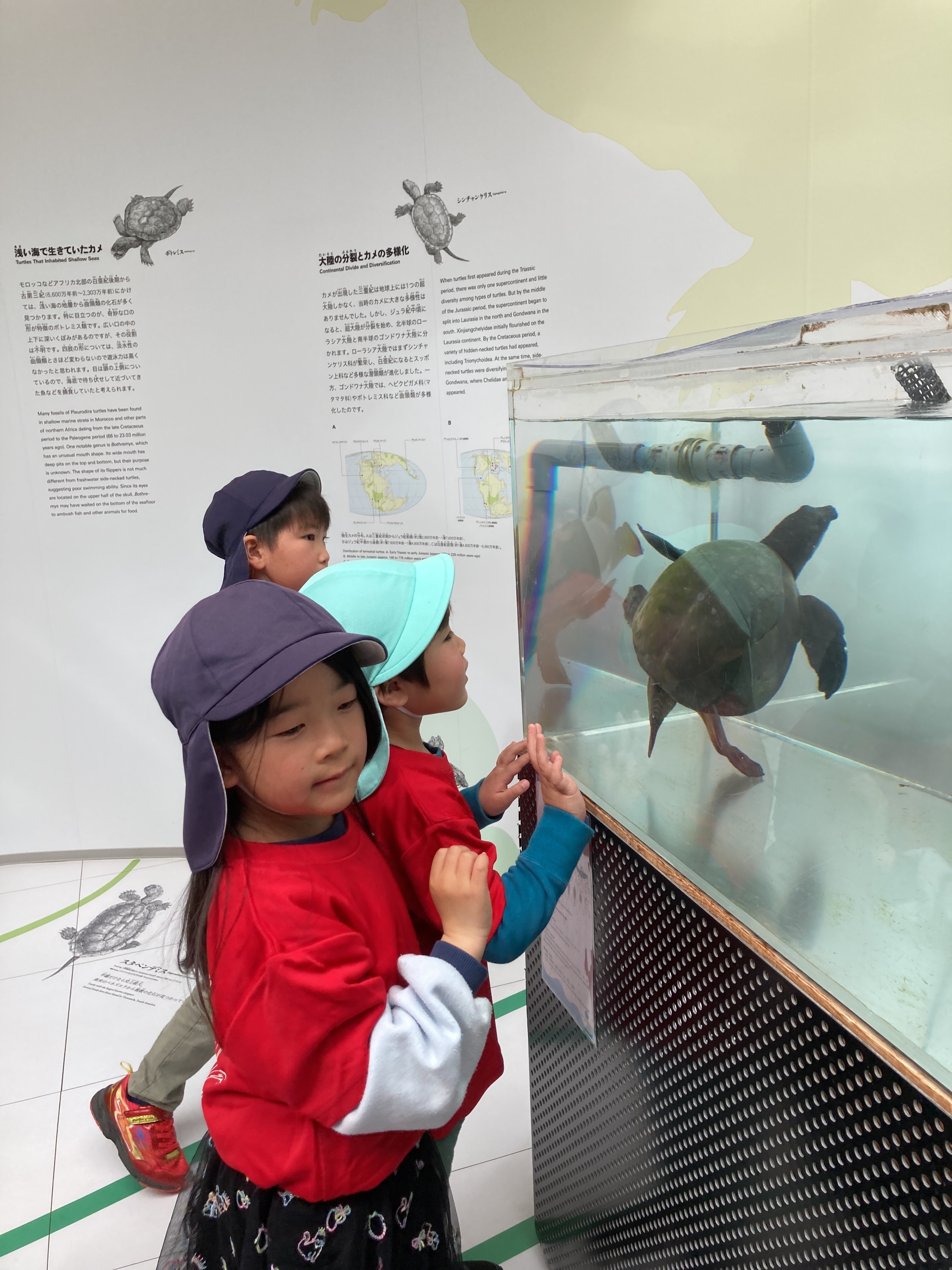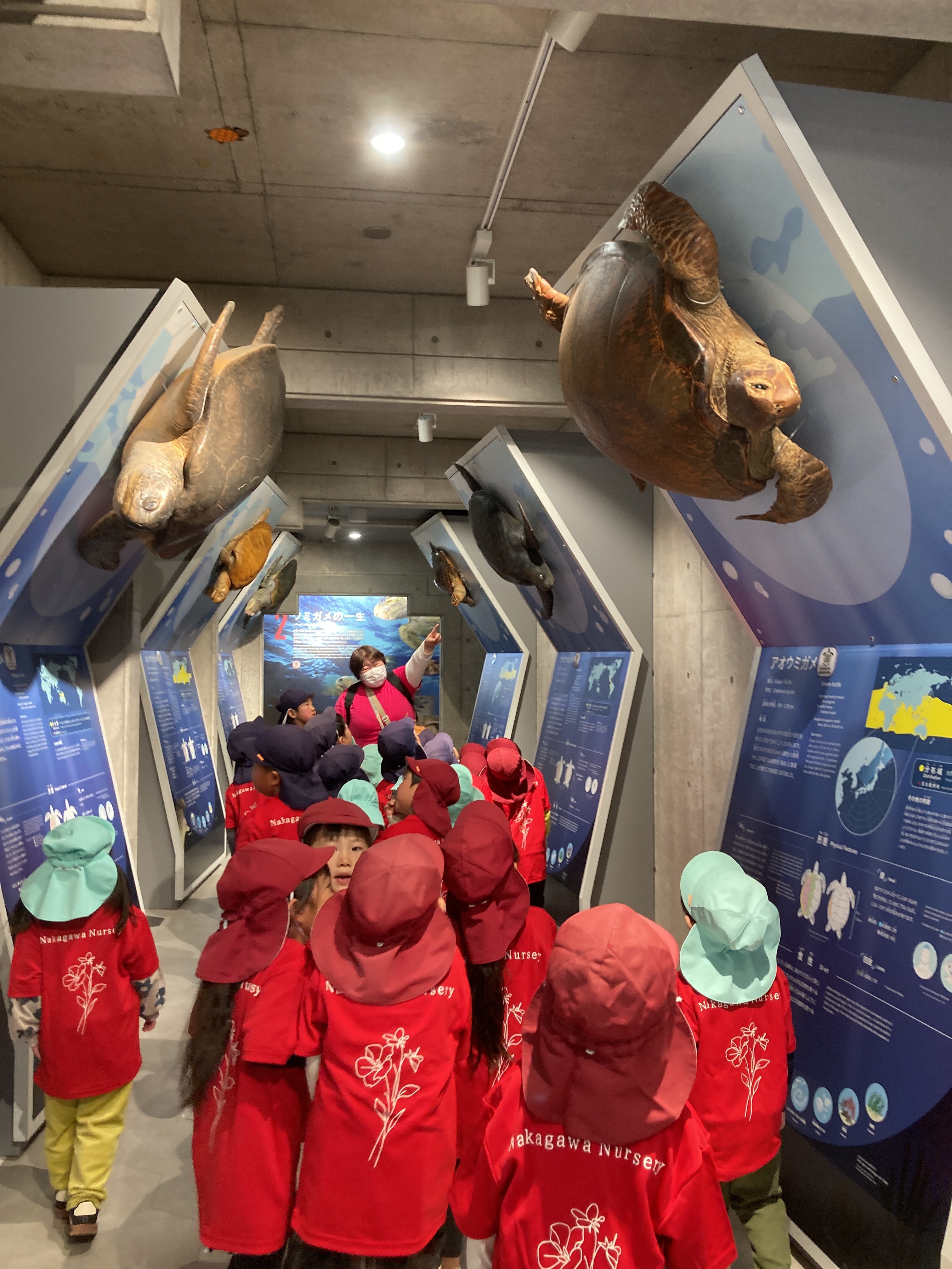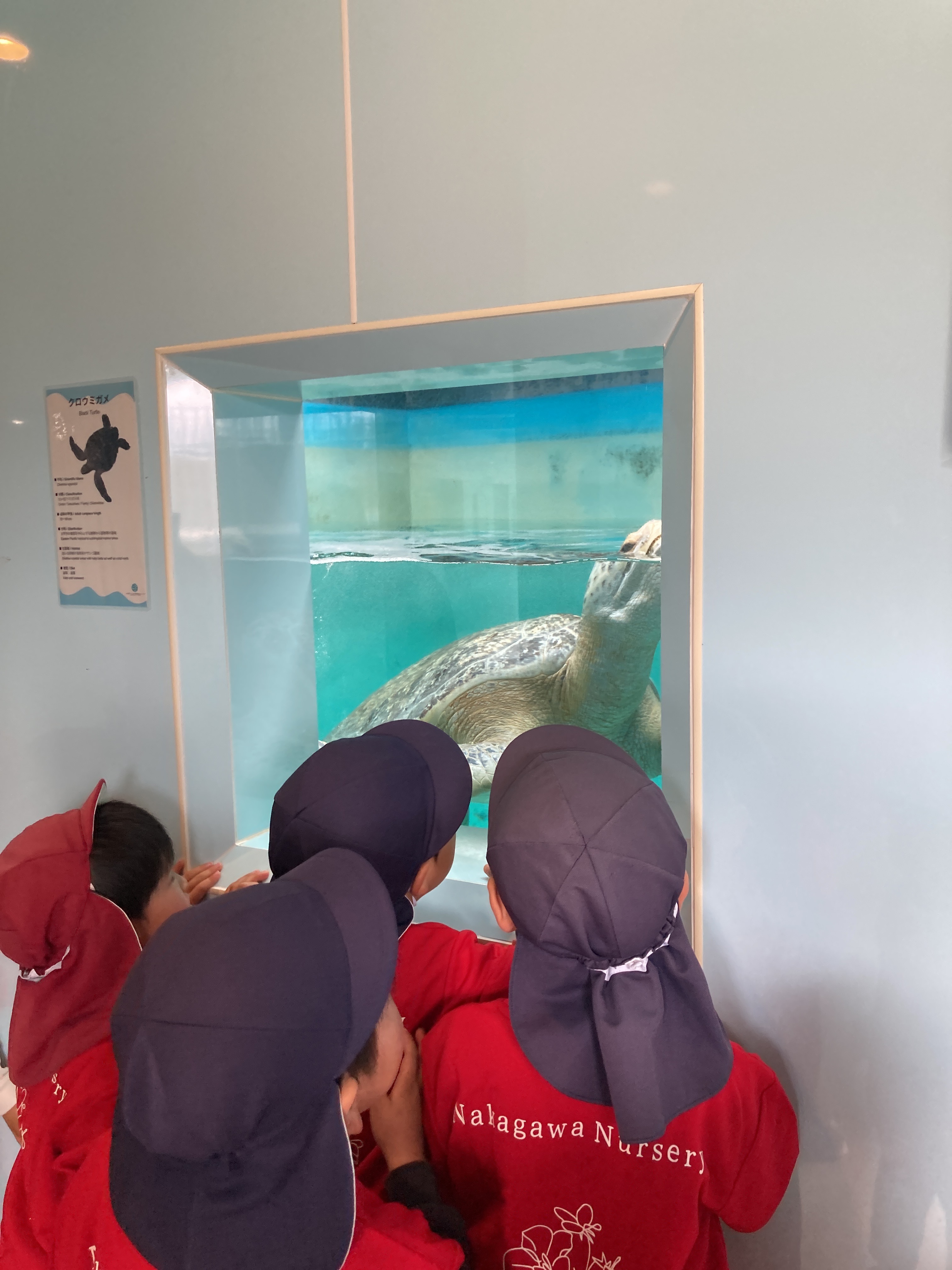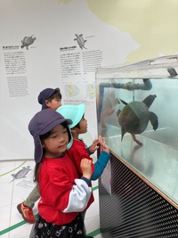 今日はみんなが楽しみにしていたお別れ遠足に行ってきました!バスの中では歌を歌ったりウミガメクイズをして楽しみました。カレッタでは沢山のウミガメに会うことができ子どもたちはとても喜んでいました。竜宮公園ではお弁当を食べてその後は公園で遊びました。とても長い滑り台が大人気で何回も滑っていました。沢山の楽しかった話を是非話してもらってくださいね。