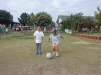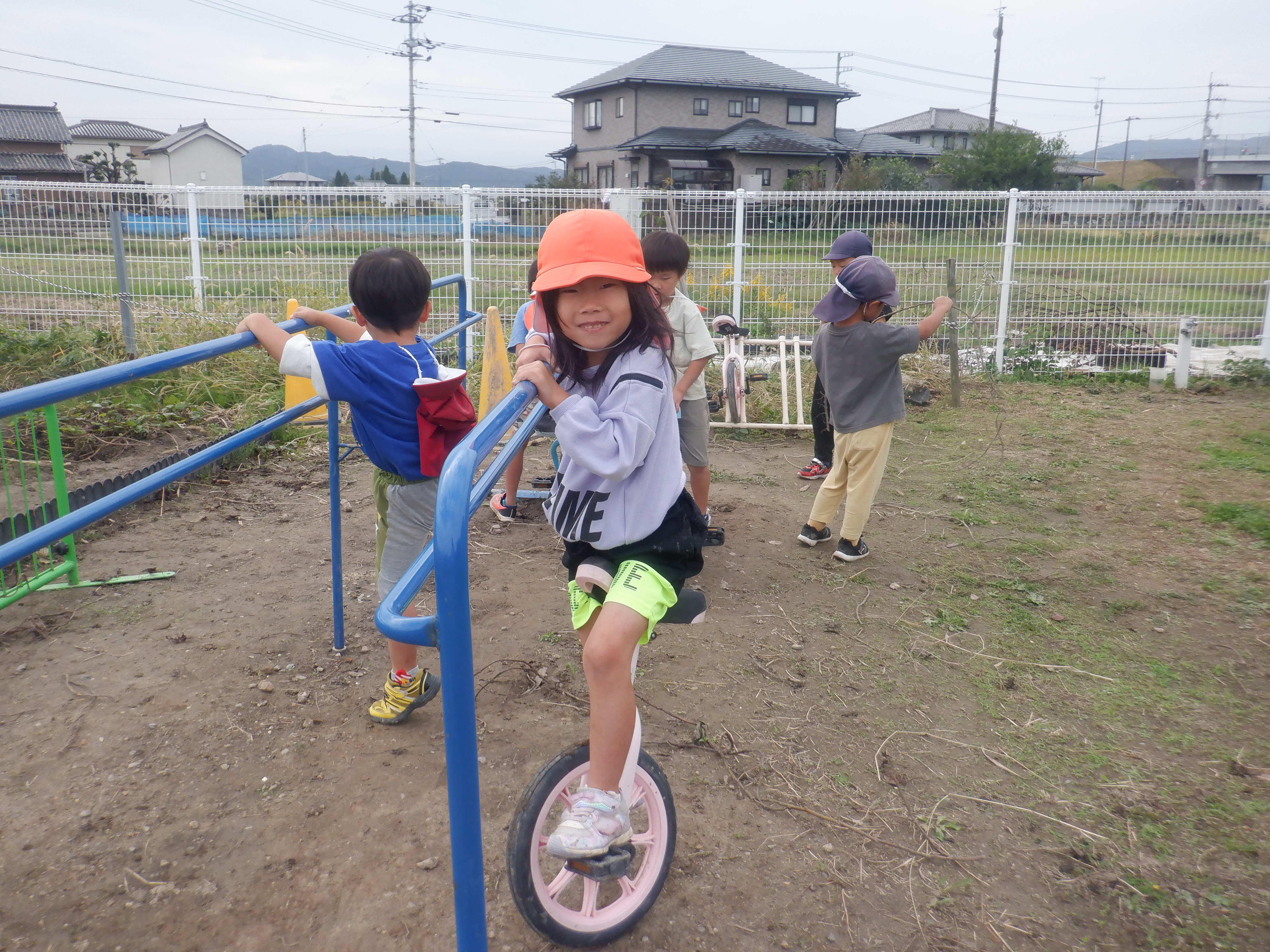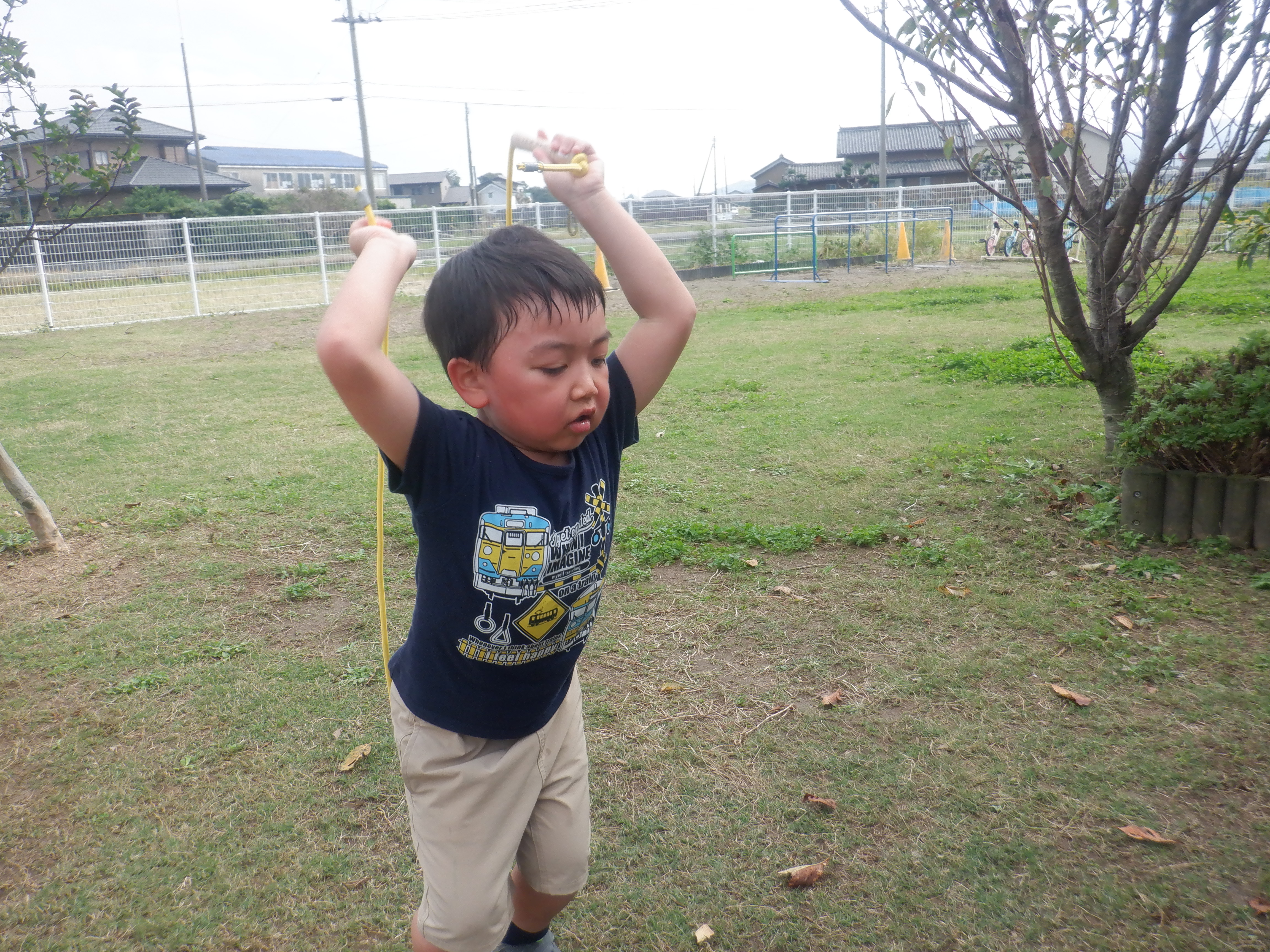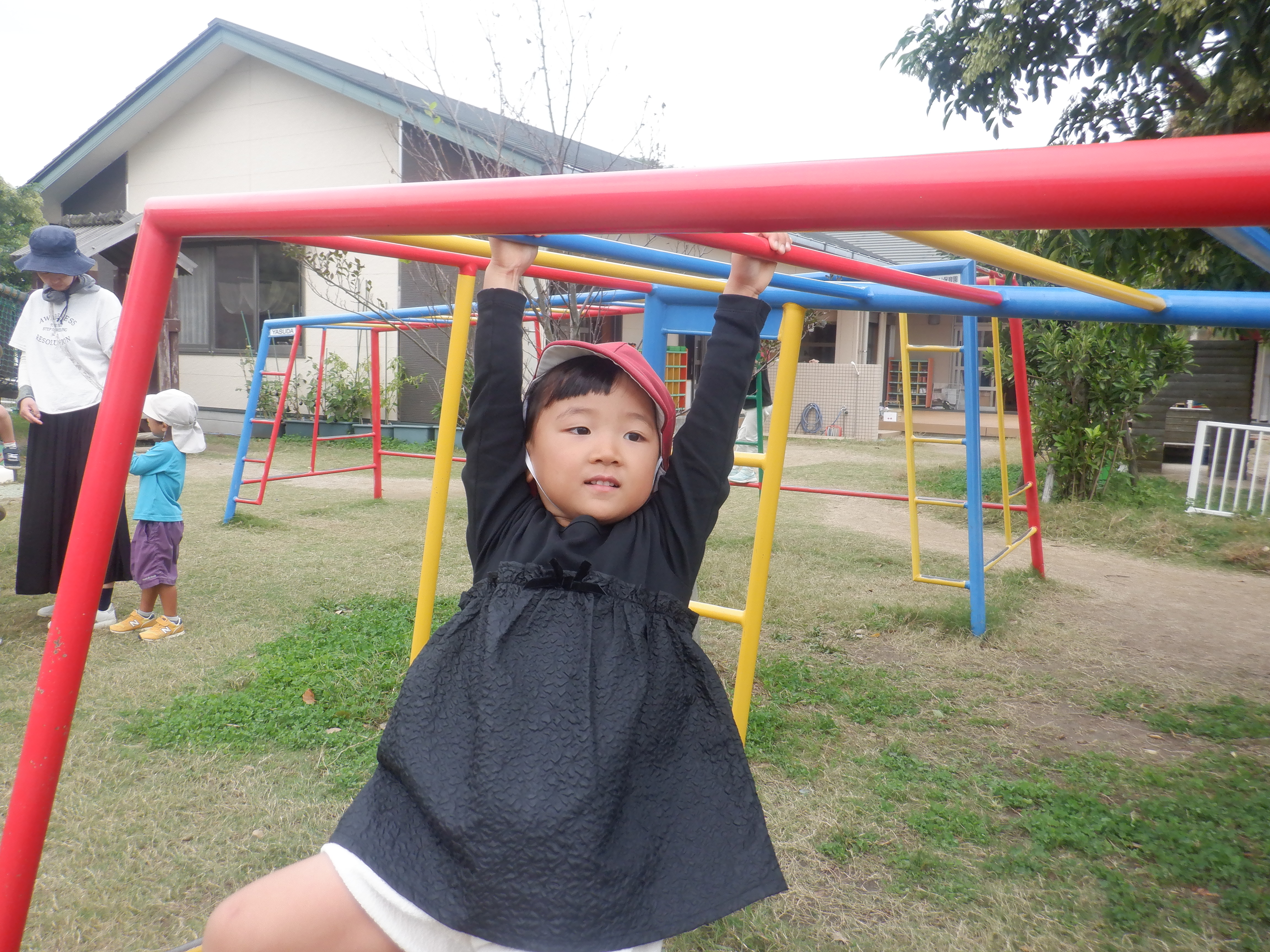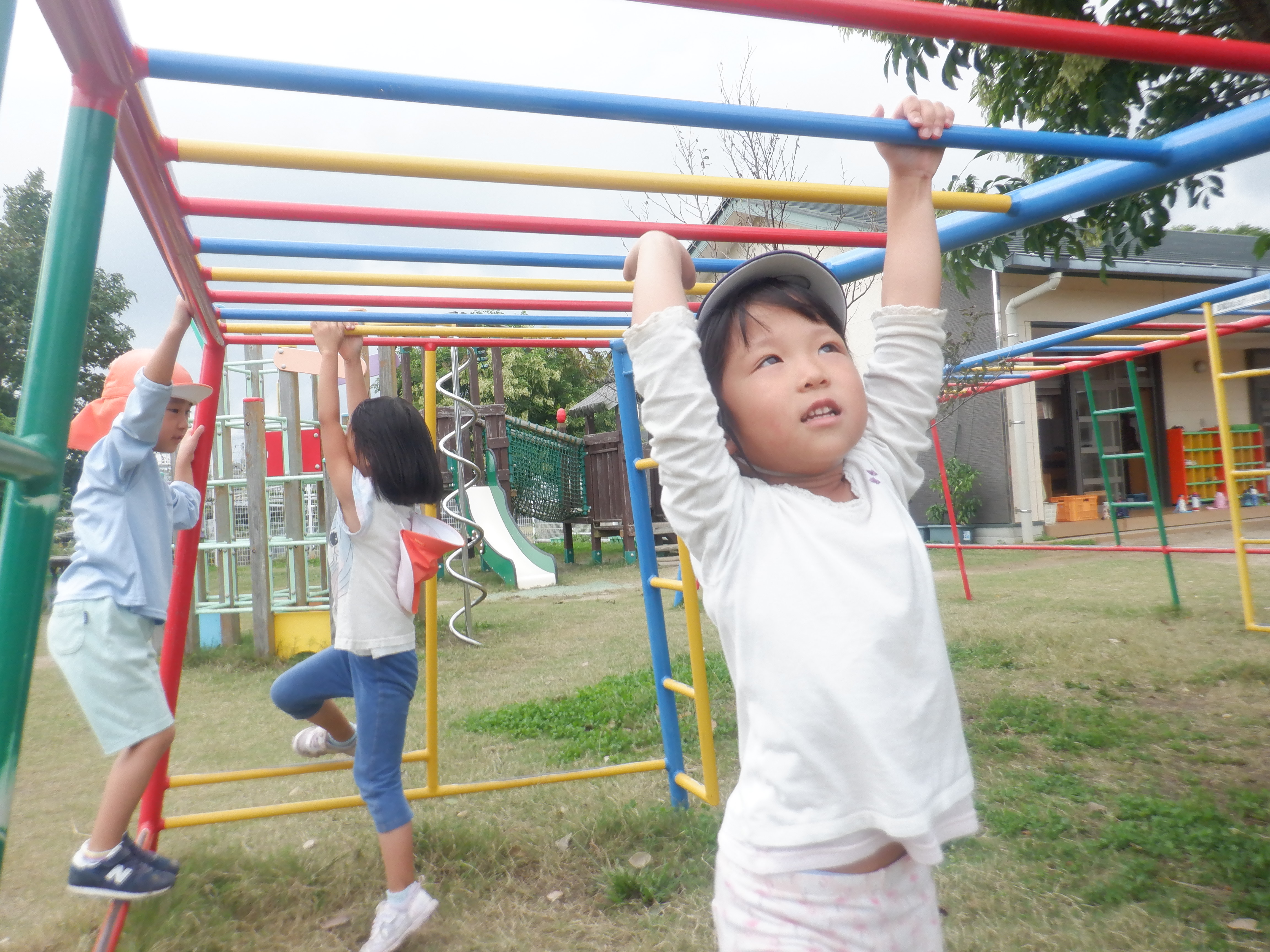 子どもたちは毎日うんていやサッカー、縄跳び、一輪車など、いろんな事に挑戦しています。縄跳びでは3回くらいしか跳べなかった子が何度も挑戦し、10回跳べた時は目をキラキラさせてみんなに報告していました。うんていでも手にかんばり豆を作りながら、毎日楽しんでいます。遊びの中でいろんな経験をし、自信にもつながっていると感じます。